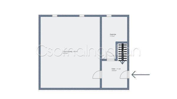 nagyterem összesen 46 m2- 60 m2-es tároló- 34 m2-es fedett teraszPince:- 72 m2-