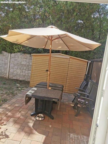 gépesítve, illetve teljes bútorzattal eladó.Nyílászárói műanyagok, redőnnyel,