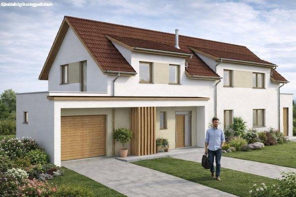 kétszintes, modern technológiával készülő családi házat. Az ingatlan egy 690