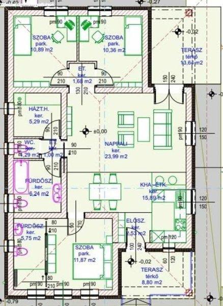 hangulatos első terasz (8,8 nm) és egy tágas hátsó terasz (13,64 nm) a kerti