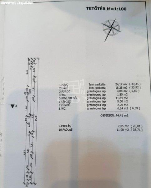 hálószoba.Tetőtér : A központi lépcsőn keresztül közelíthető meg. Itt