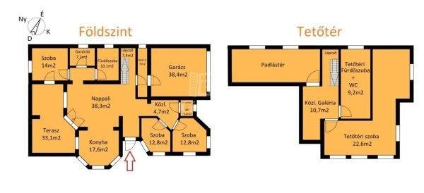 gázkazán mellett egy vízteres kandalló is segíti. A tetőtér beépítéses, 3
