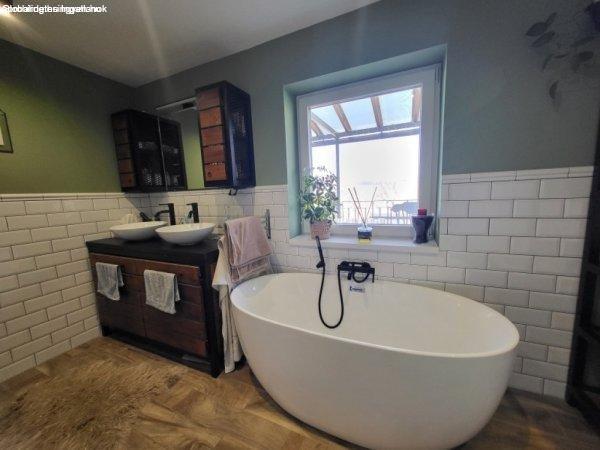 nyíló hálószoba- tágas nappali- modern konyha étkezővel- fürdőszoba káddal és