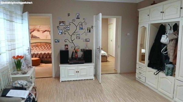 110 nm.Külső feljárón tágas, 60 nm-es, amerikai konyhás nappali+2 szobás,