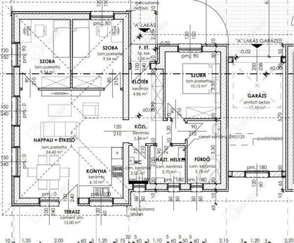 + 17.1 m2 kocsibeállóval. Nappali-konyha-étkező mellett három hálószoba kerül