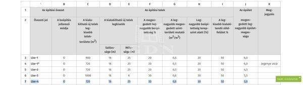 30%-a legkisebb kialakítandó zöldfelület 50%-a megengedett legnagyobb