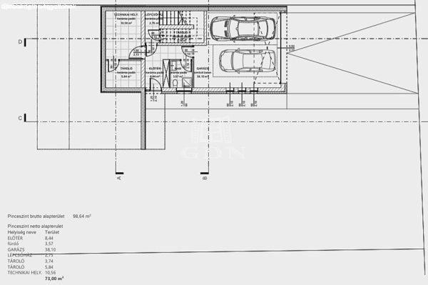 garázs, valamint további helyiségek ? előtér, fürdő, tárolók és gépészet ?