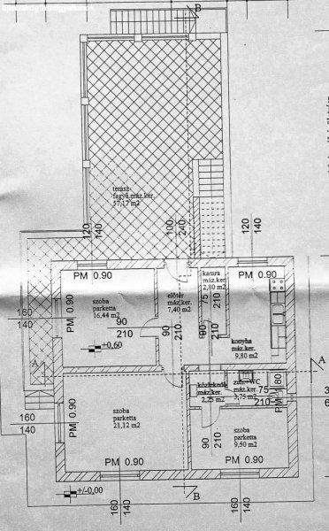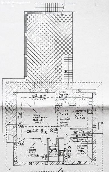 (48nm) és az alsó lakás (75 nm), 1980-as években épült, beton alapra 30-as tégla