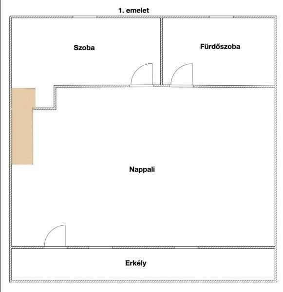nappali, egy hálószoba és egy fürdőszoba kapott helyet. A nappaliból közvetlen