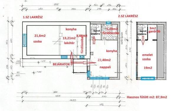Jellemzők:Jelenleg két külön lakrészre van bontva - kétgenerációs - igény