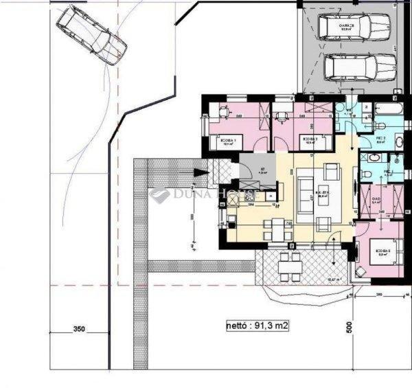 hálószoba- 2 fürdő- Hálószobából nyíló gardrób- Fedett beálló ( garázs kérhető,