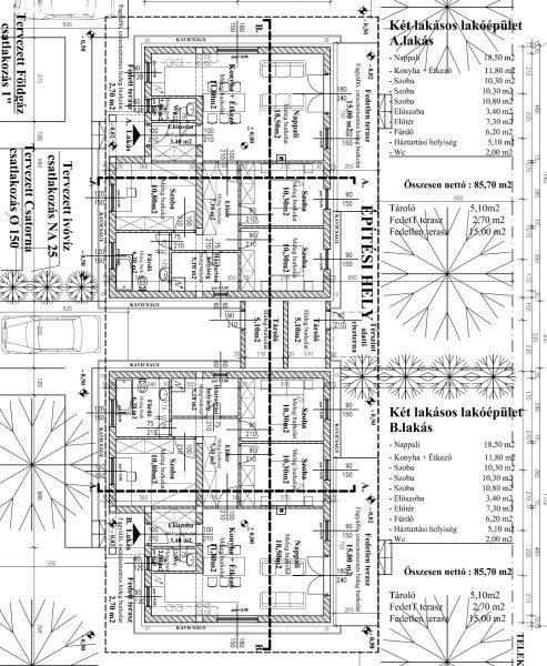 nyitott terasz is. A telek szélessége 35 méter így mindkét ház utcafronton