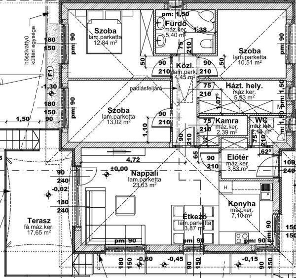 FtAlapterület: 95 nm lakótér + 17,65 nm teraszTelekméret: 800 nm (tágas, jól