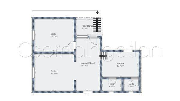 75 m2-es hasznos alapterületű családi ház 900 m2-es telken eladó