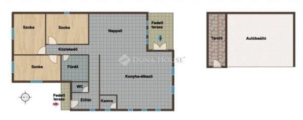 teraszponyvával ellátva- Dupla kocsibeálló tároló helyiséggel- Riasztó és