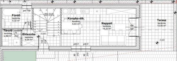Elrendezés:Földszint: nettó 41 m2 + terasz? Nappali 18.2 m2? Konyha - étkező