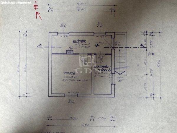 11,9m2, szoba9,4m2, fürdőszoba-wc 3,6m2;Pince: előtér 10,33m2, zöldség tároló