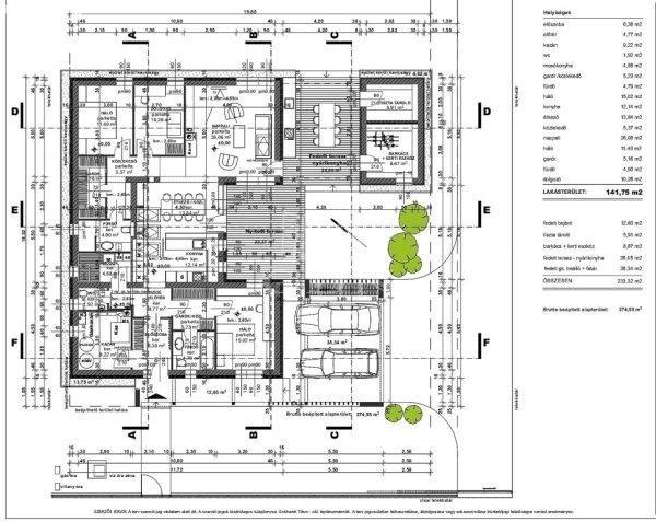 gépkocsibeálló, egy egységet képez a házzal.A 25 nm-es fedett, fűthető terasz