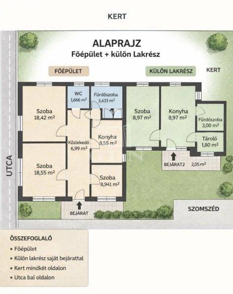 913 m˛-es telken elhelyezkedő, kétlakásos lehetőség kiváló választás.A főépület