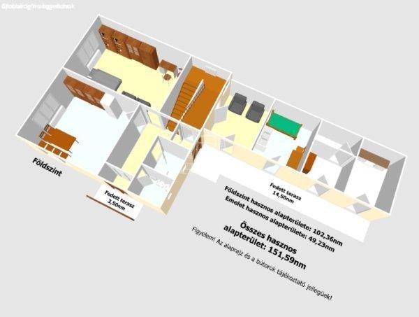 alapterülete: 28nm.A főépület hasznos alapterülete:151,59nm:- földszint