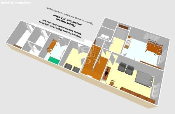 vagy 3 különálló lakrész kialakítására is alkalmas lehet, hiszen a földszint, az
