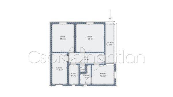 74 m2-es összkomfortos családi ház 1975 m2-es telken eladóHELYISÉGEK- 3 külön