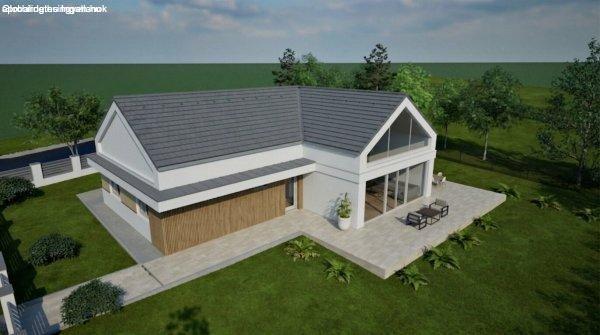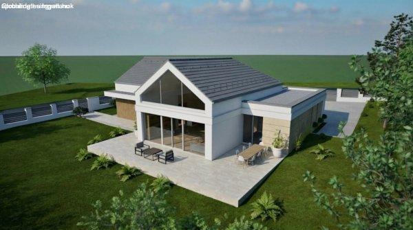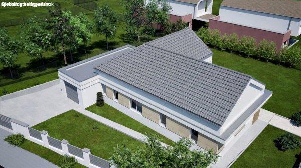 nappali + 4 szobás, nagy teraszos, garázsos energiahatékony családi ház