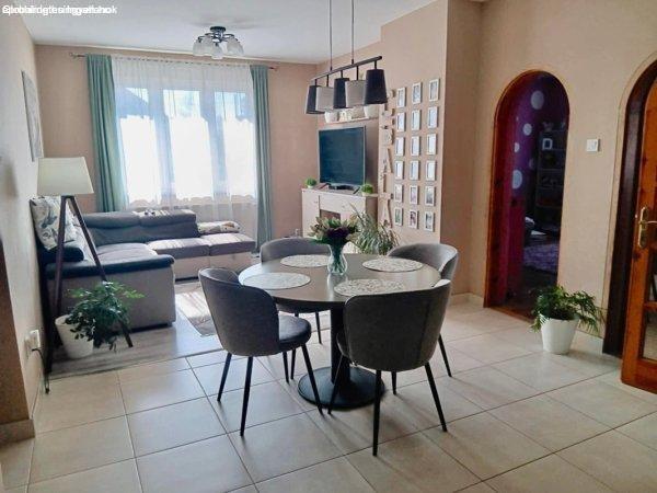 lakóterülete 105 m2, melyben konyha-étkező-nappali, 3 hálószoba, valamint