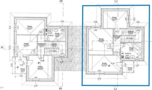 3,63 m2,- kamra 2,85 m2,- terasz 6,81 m2.Emelet:- szoba 9,36 m2,- szoba 14,23