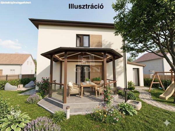 egy kétszintes, 140 m˛-es családi házat 604 m˛-es telken. Az elhelyezkedés egyik