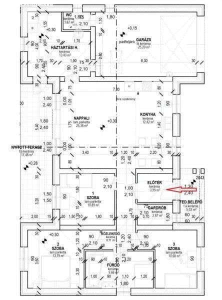 10,89 m2, 13,79 m2, 10,68 m2- 2 wc- 3 m2-es gardrób- 14 m2-es háztartási