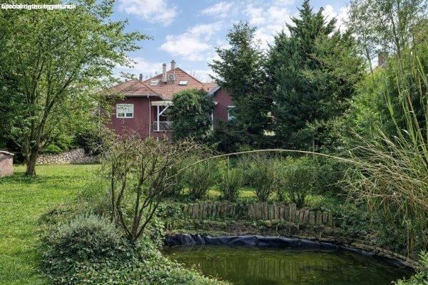 parkosított, kerti tóval, mobil medence helyével és mobil garázzsal. A ház