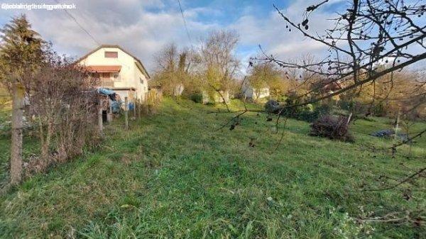 m2-es, enyhén lejtős, körbekerített, és gyümölcsfák is vannak rajta. A környék
