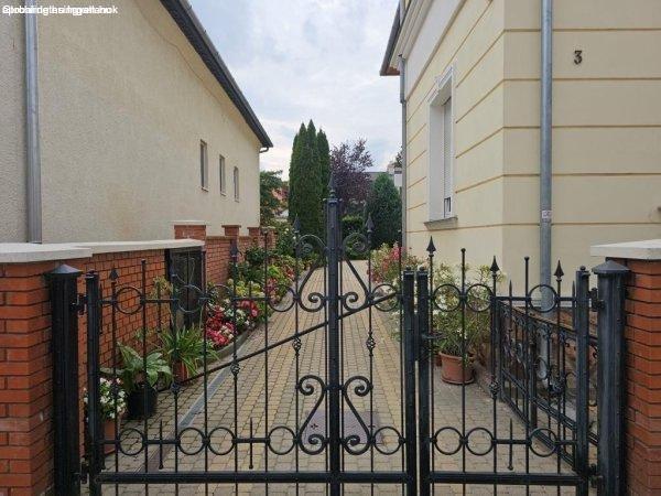 borított, szépen parkosított. Mind a lakás, mind a kert kiváló állapotban