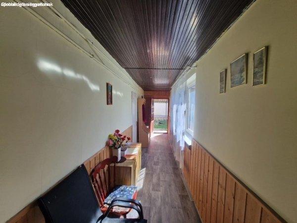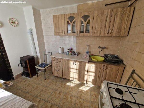 közlekedő folyosó. Fűteni kályhákkal lehet, meleg vizet villanybojler ad. A