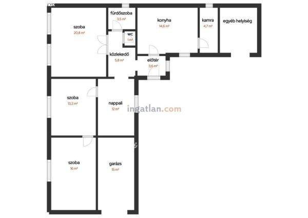 magában.A ház jelenlegi elrendezése: 4 tágas szoba, konyha kamrával, fürdőszoba,
