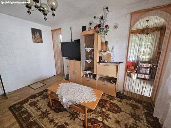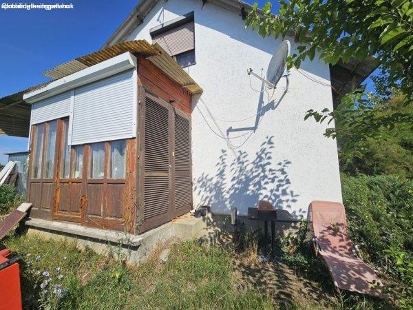 található egy kétszintes, kb. 60 m˛-es kis ház, amelyben:2 szoba, konyha,