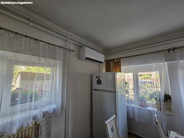kazánnal biztosított radiátor hőleadókkal. Nyári hőségben pedig a 3 klíma