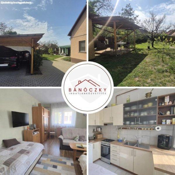 kielégítő, 85 m˛-es családi ház, amely egy 764 m˛-es, gondozott telken