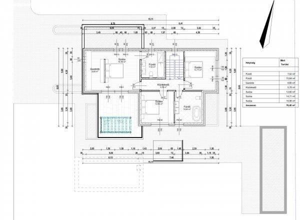emelt fűtés-készen, garázzsal. Bruttó 220m2 beépített terület, Nettó 196m2