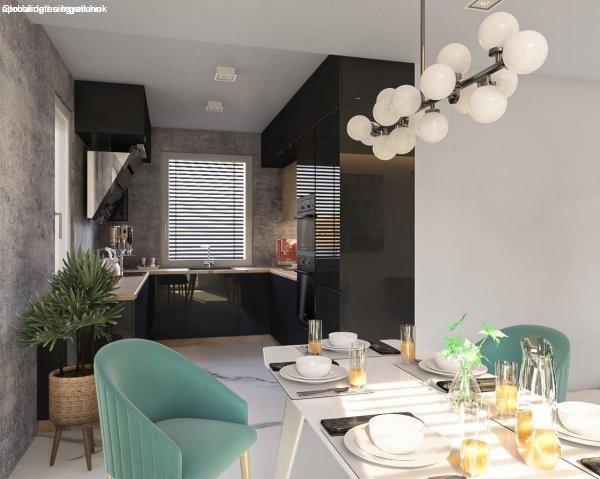 108 m2 hasznos alapterület. Nappali + 4 hálószoba, nagy üvegfelületek,