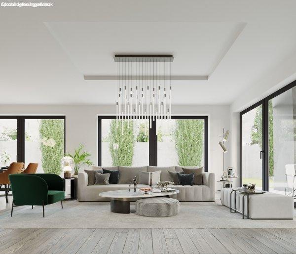üvegfelületek, klasszikus formavilág, többféle külső design lehetőség. Ahogy a