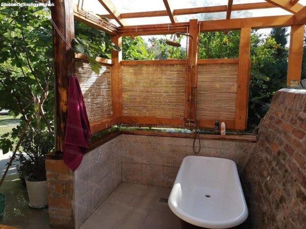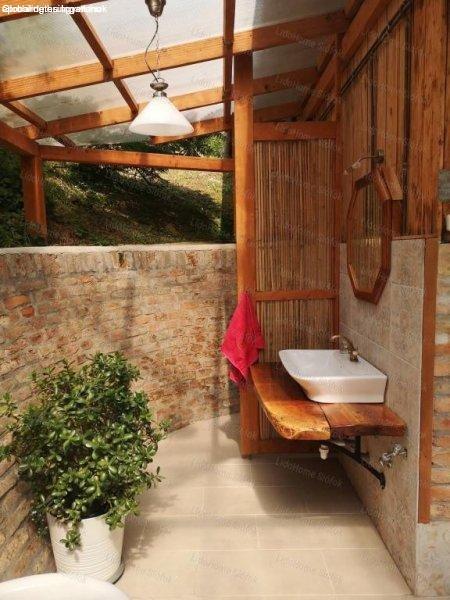 hangulatos pihenősarkot alakítottak ki, kinti fürdőszobával.Itt megáll az idő,