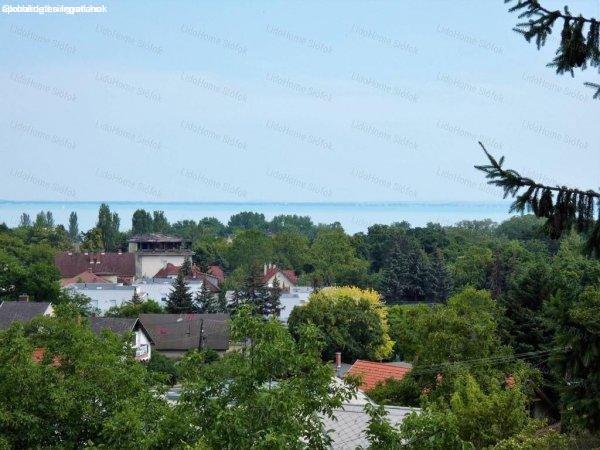 balatoni panoráma.Az 542 m2 nagyságú, lejtős területen elhelyezkedő ház