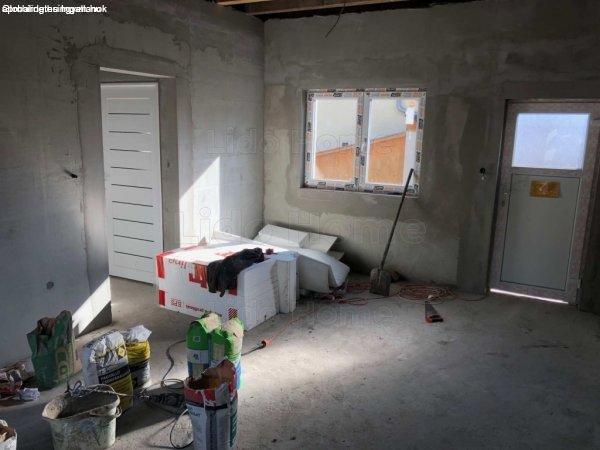 újonnan épített, napfényes amerikai konyhás nappali + 2 szobás családi ház. A