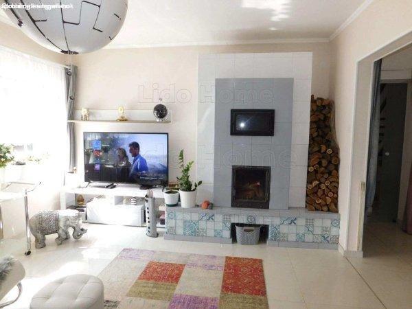 padlófűtés, a nappaliban egy beépített, fatüzelésű kandalló, az étkezőben egy
