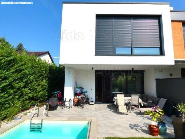 terasszal/erkéllyel és hőszivattyús fűtéssel melegített külső medencével