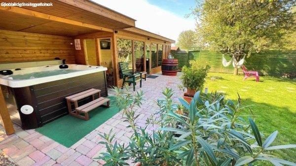 fürdőszobár wc-vel. -Ezzel szemben találjuk a kertben a wellnes részleget, Itt