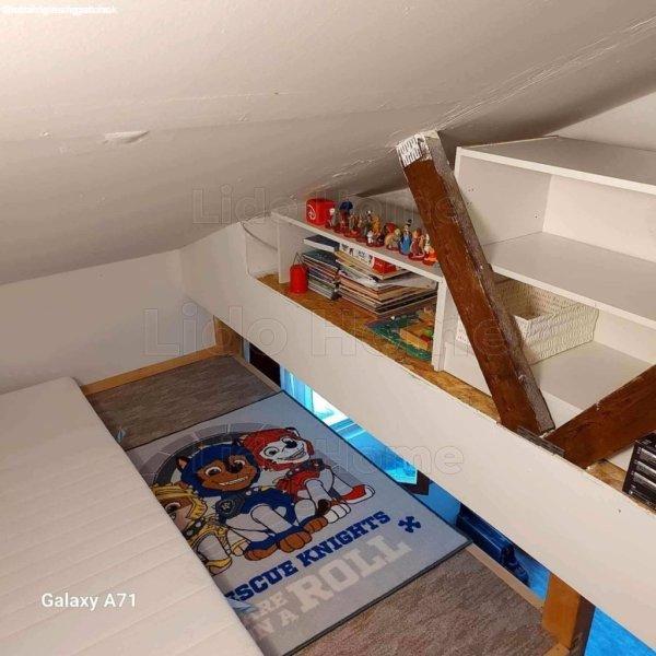 kályhával- elosztása: amerikai konyhás nappali, - innen galériás kialakítású