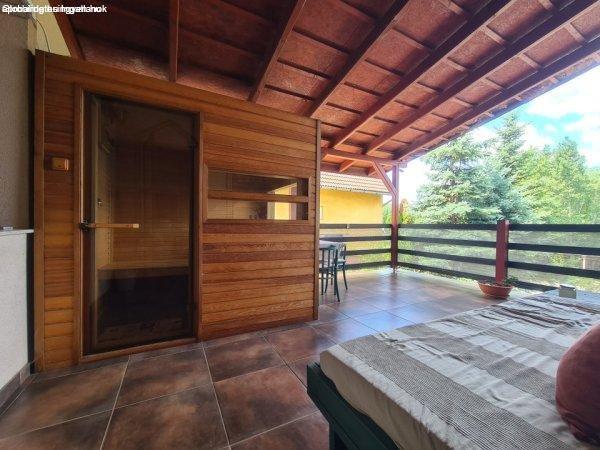 mögé semmit. A magas teraszról, ahol 4 személyes finn szauna is található, a